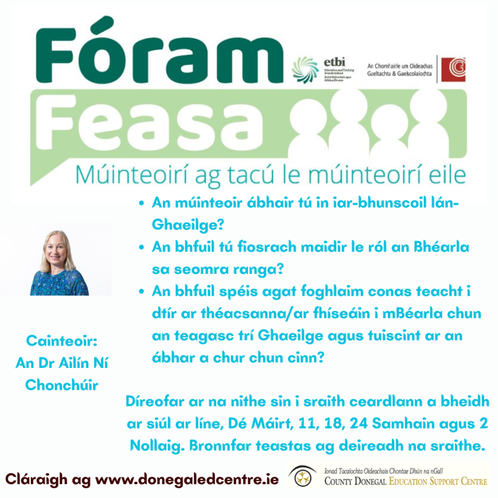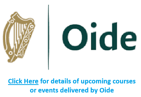 • Oide Events - Details of any upcoming Oide Teacher Professional Training can be found here. To register for any of this training please click here.