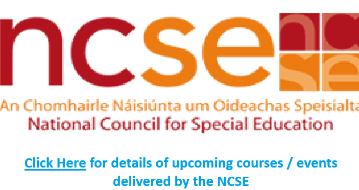 • NCSE Events - Details of any upcoming NCSE Teacher Professional Training can be found here. To register for any of this training please click here.