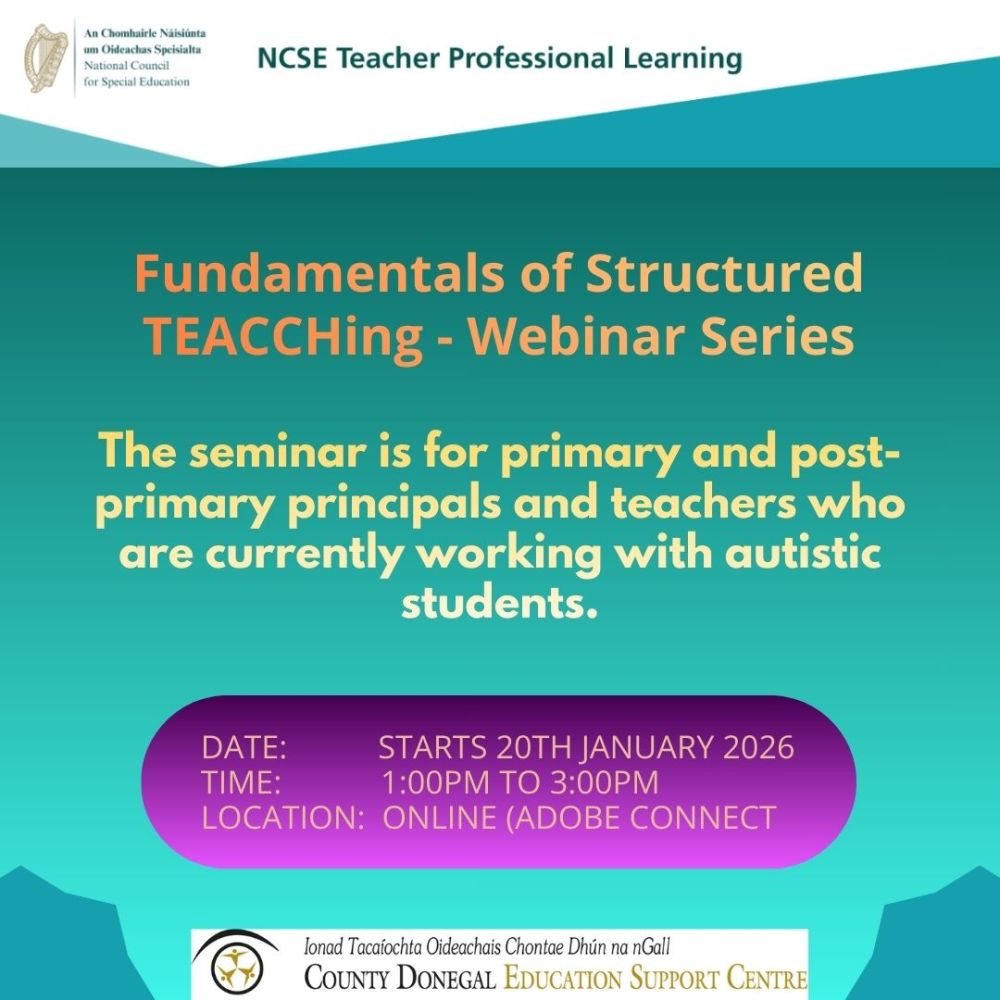 - NCSE Events - Details of any upcoming NCSE Teacher Professional Training can be found here. To register for any of this training please click here.