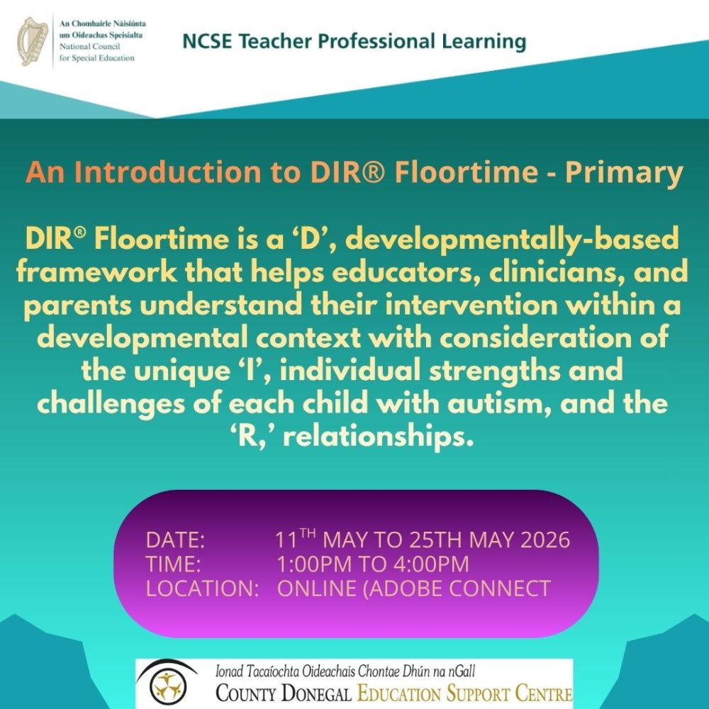 This course is provided by the National Council for Special Education (NCSE) in conjunction with Denise Wilson MSc Occupational Therapist, Play Therapist and ICDL DIR® Floortime Training Leader.