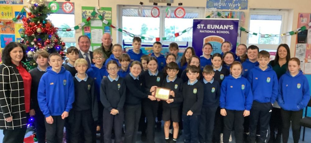 The picture below is of the 4th and 5th Class pupils from St Eunan's NS in Raphoe, winners of the National Something Fishy Programme 2025.